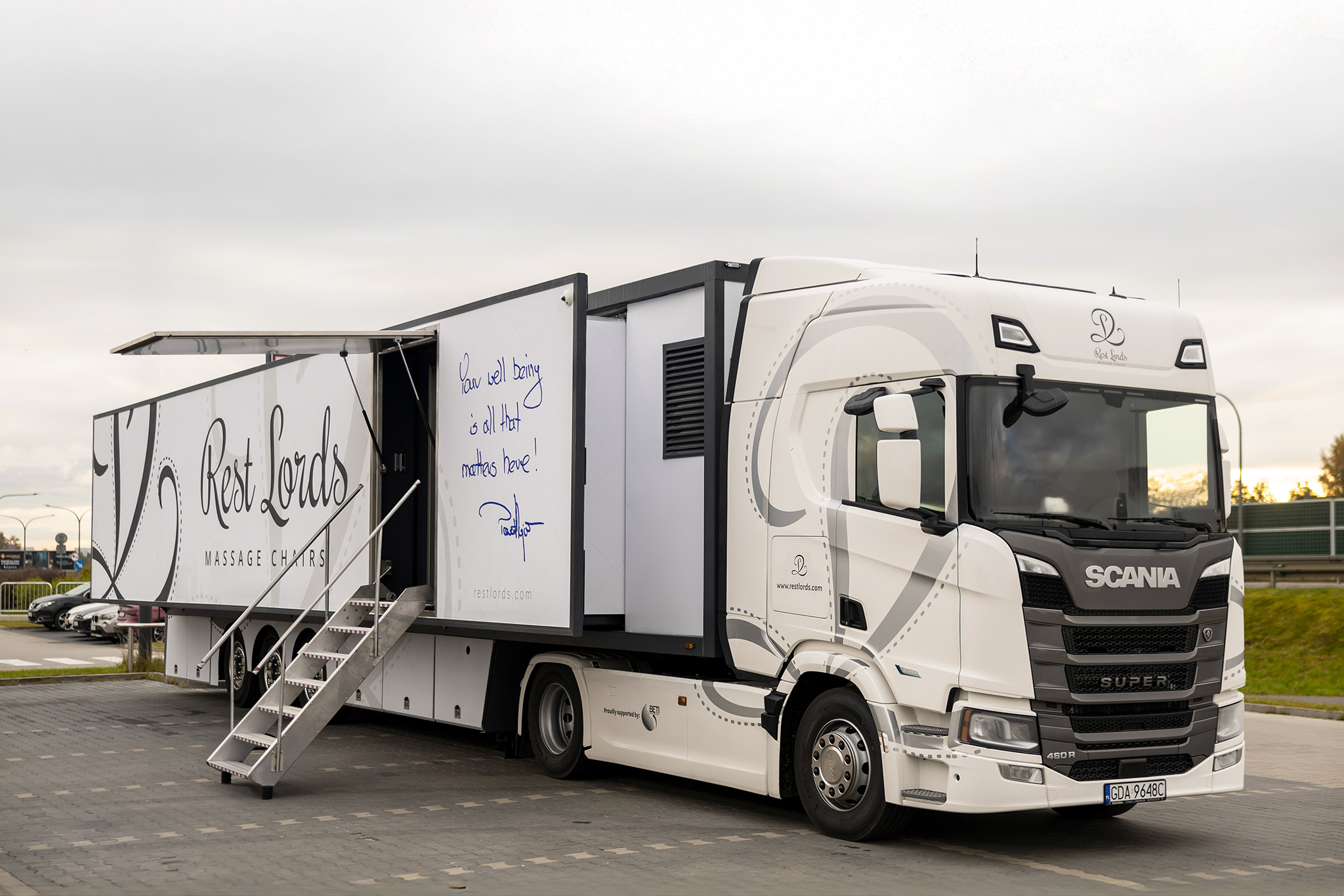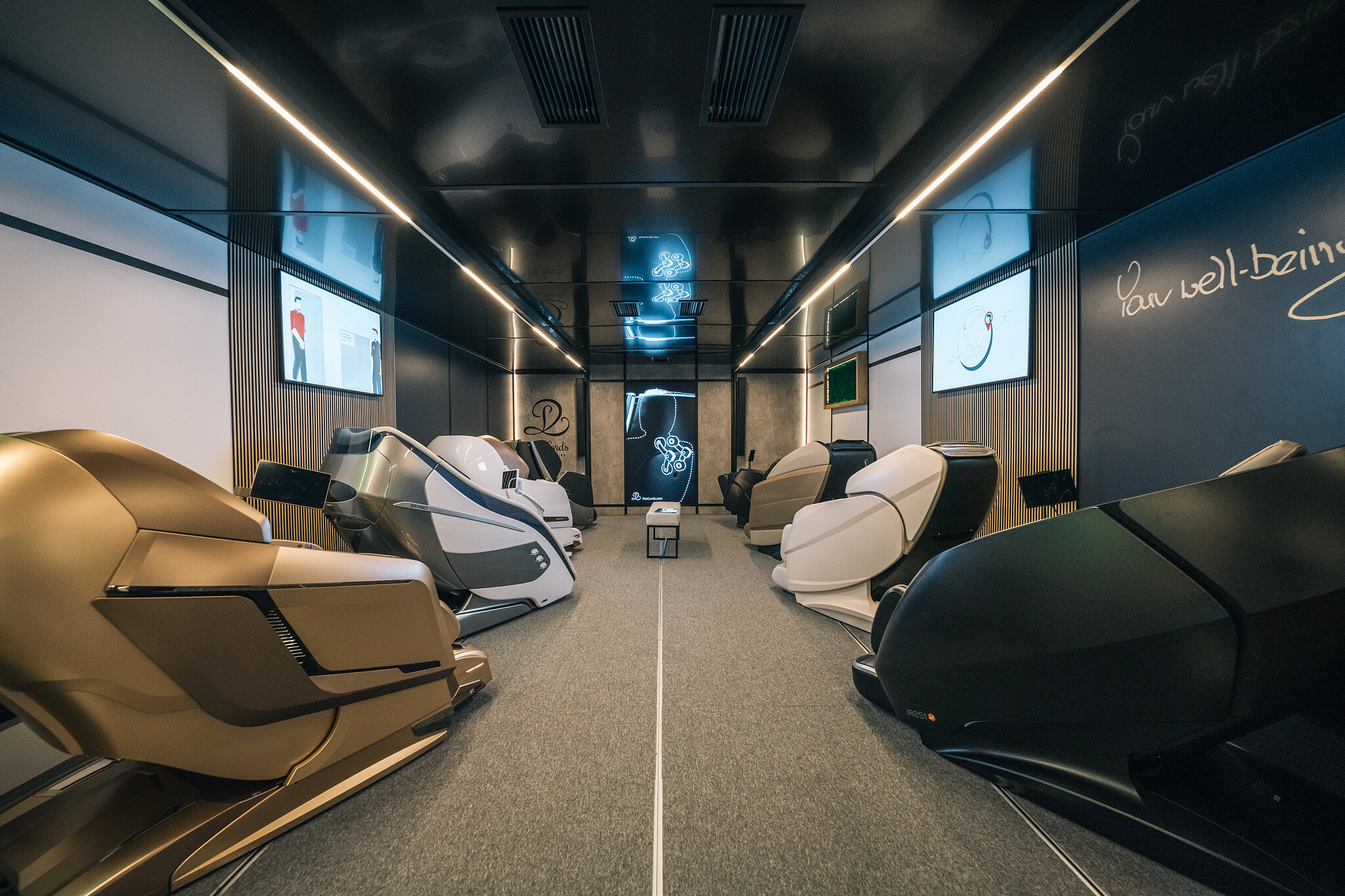 R-ShowRoad by Rest Lords is the world’s first and, so far, the only mobile, semi-autonomous massage chair showroom. It, with an area of over 50 square metres, houses a dozen massage chairs. During the meeting, the customer is alone with the massage chair, but never without support. Just like in R-ShowRooms, thanks to the R.A.R.E system, they will be accompanied by an advisor – remotely, with full commitment, ready to answer any questions and help choose the right model, as if they were right next to the customer.